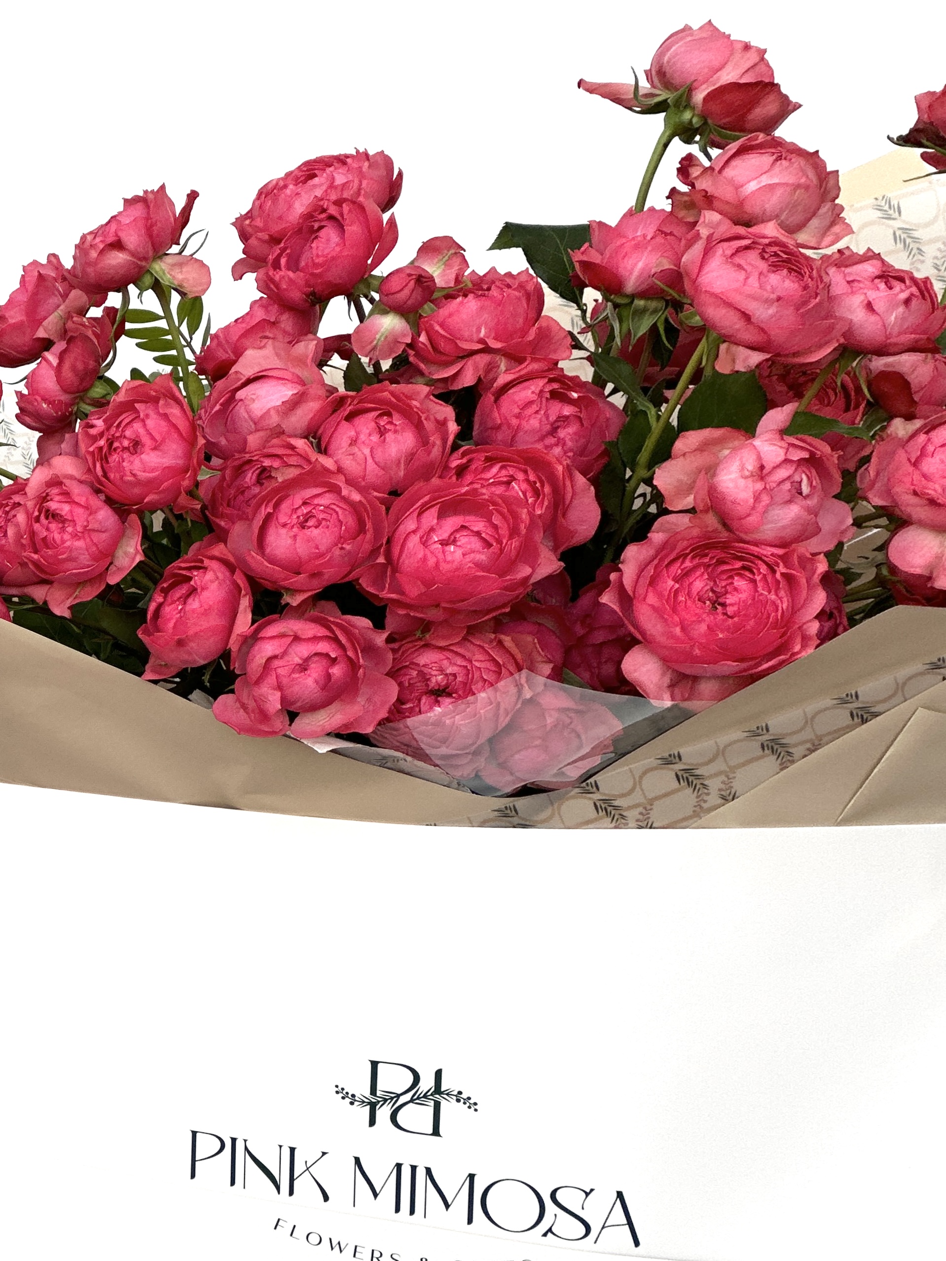 Our exquisite raspberry spray roses—a stunning portrayal of love that captivates the hearts of all. Their simple elegance radiates warmth and affection, making them the perfect choice to express your sentiments.